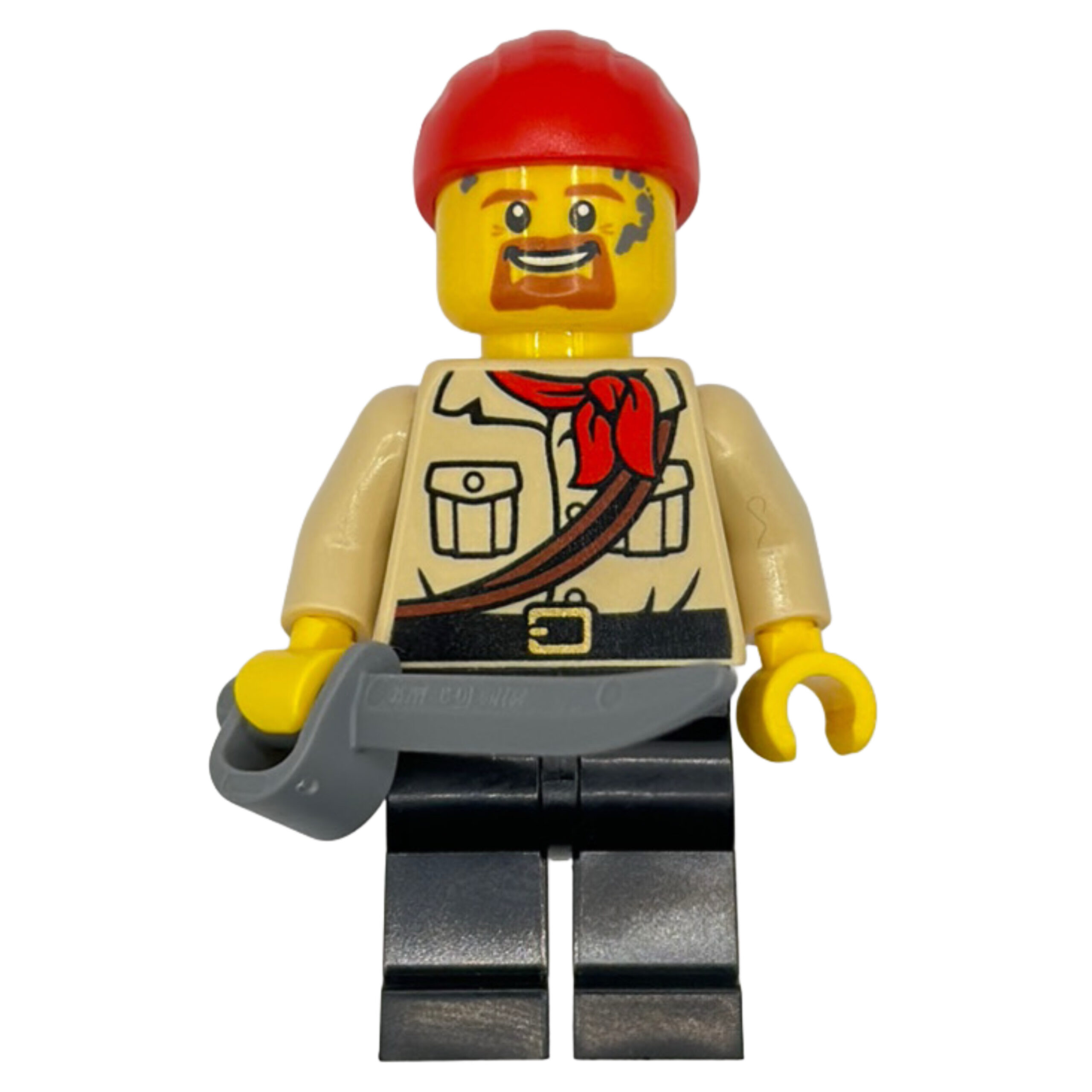 Czerwony bandana na głowie – klasyczny piracki dodatek, który nadaje tej figurce od razu charakterystyczny wygląd.