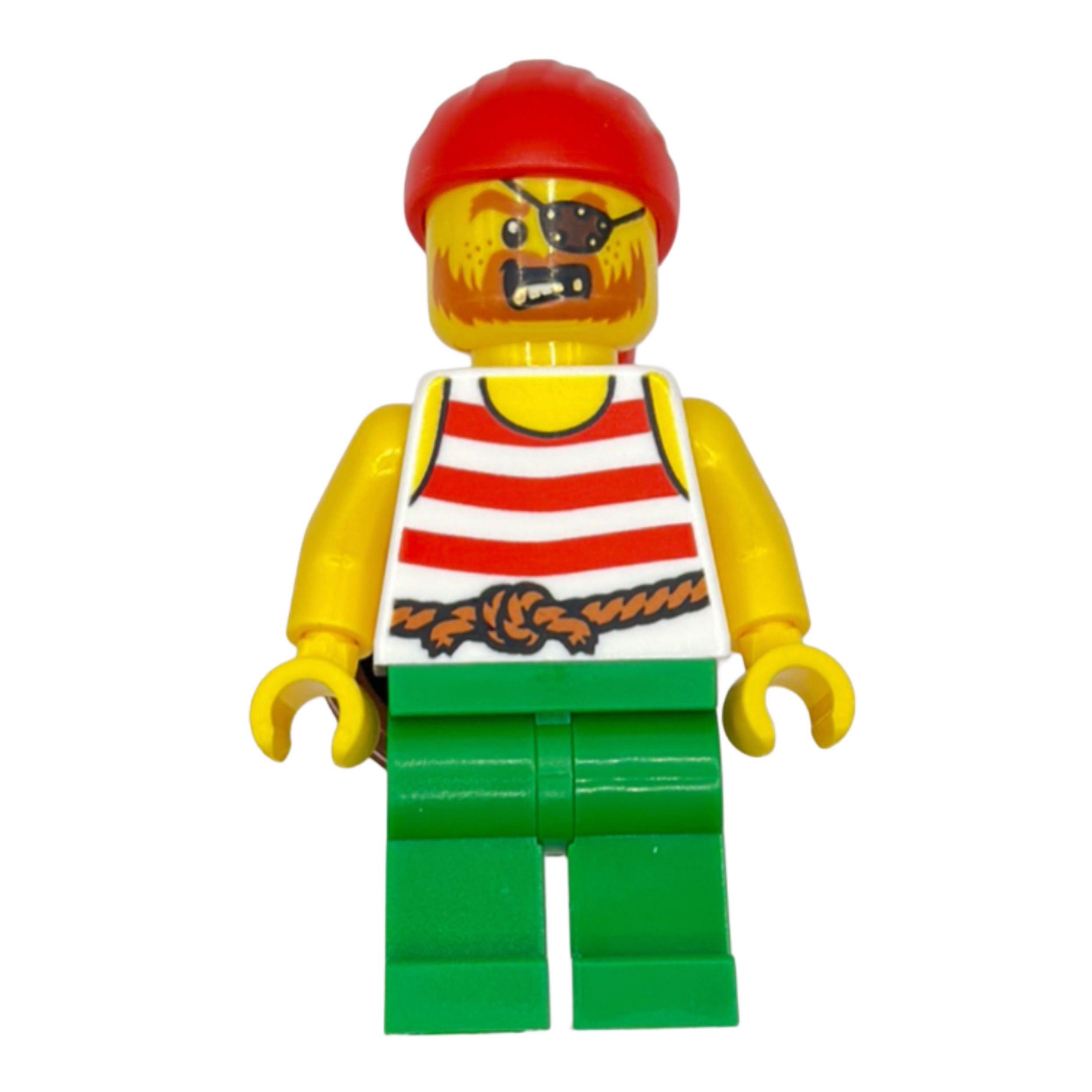 Figurka LEGO przedstawia pirata z serii Pirates, będącego częścią zestawu Eldorado Fortress. Ta unikatowa minifigurka wyróżnia się szczegółowym strojem i z pewnością przyciągnie uwagę kolekcjonerów oraz miłośników LEGO.