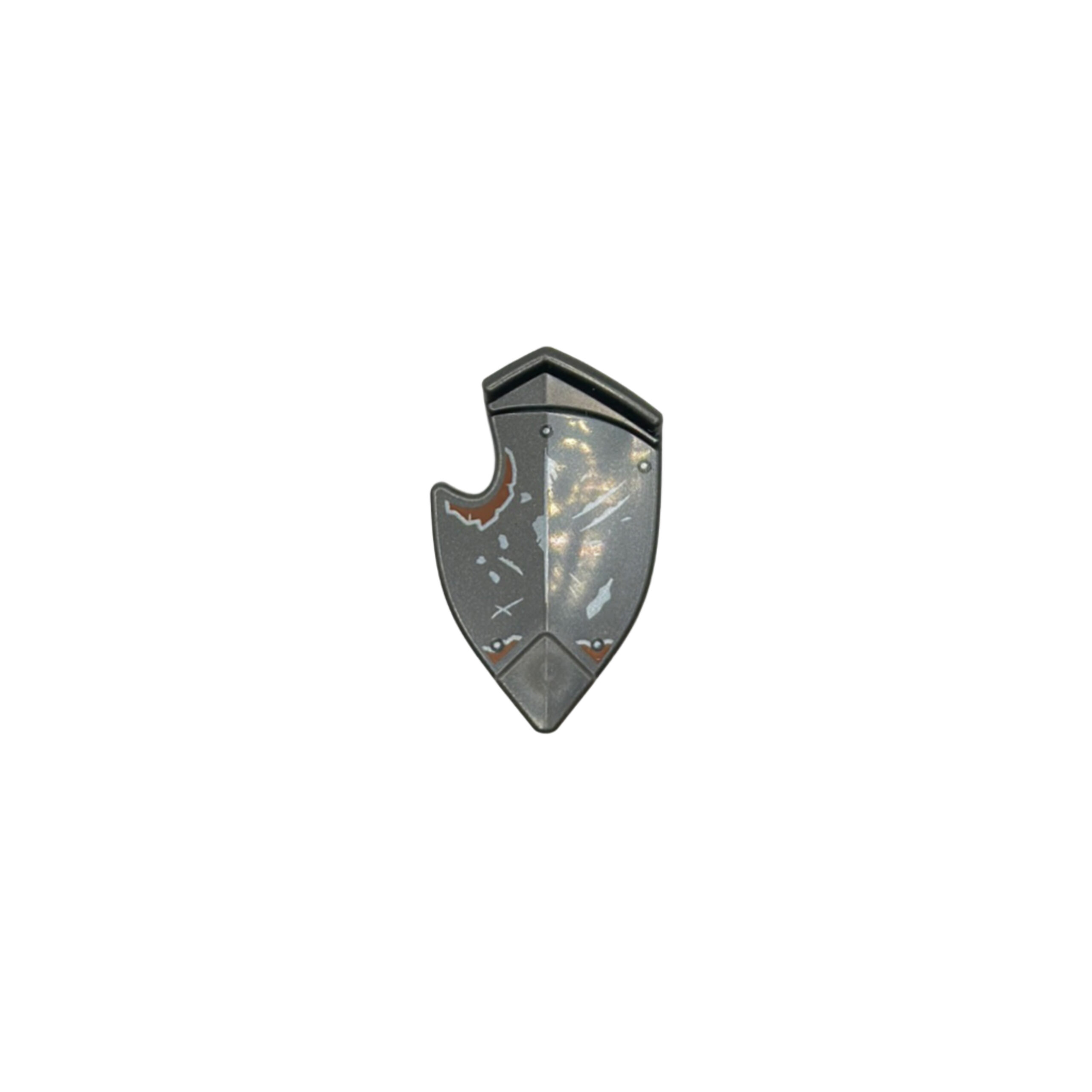 Unikatowa tarcza minifigurki o szerokim, spiczastym dole i wyciętym narożniku.